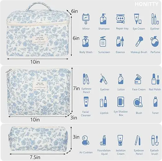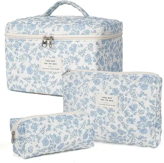 Large Makeup Bag, Cute Cosmetic Bag for Women Girls, Floral Coquette Aesthetic Toiletry Bag, Travel Make up Organizer Bag